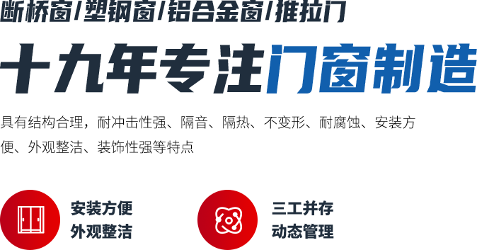 主要生產(chǎn)鋁合金窗、斷橋窗、幕墻、塑鋼窗和各種異形窗、推拉門、防火窗等